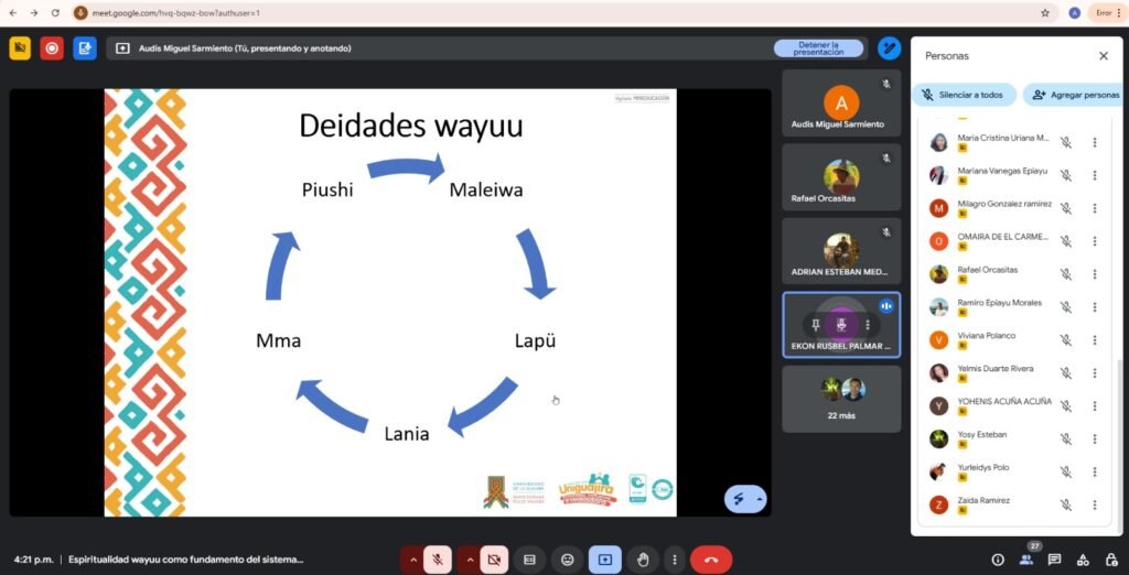 En el marco del proyecto «Achijirawaa: Fortalecemos la normativa y los valores de ser Wayuu», se llevó a cabo con éxito un encuentro de formación virtual, donde miembros de la comunidad participaron activamente en un espacio de reflexión y aprendizaje sobre la riqueza de la cosmovisión wayuu.